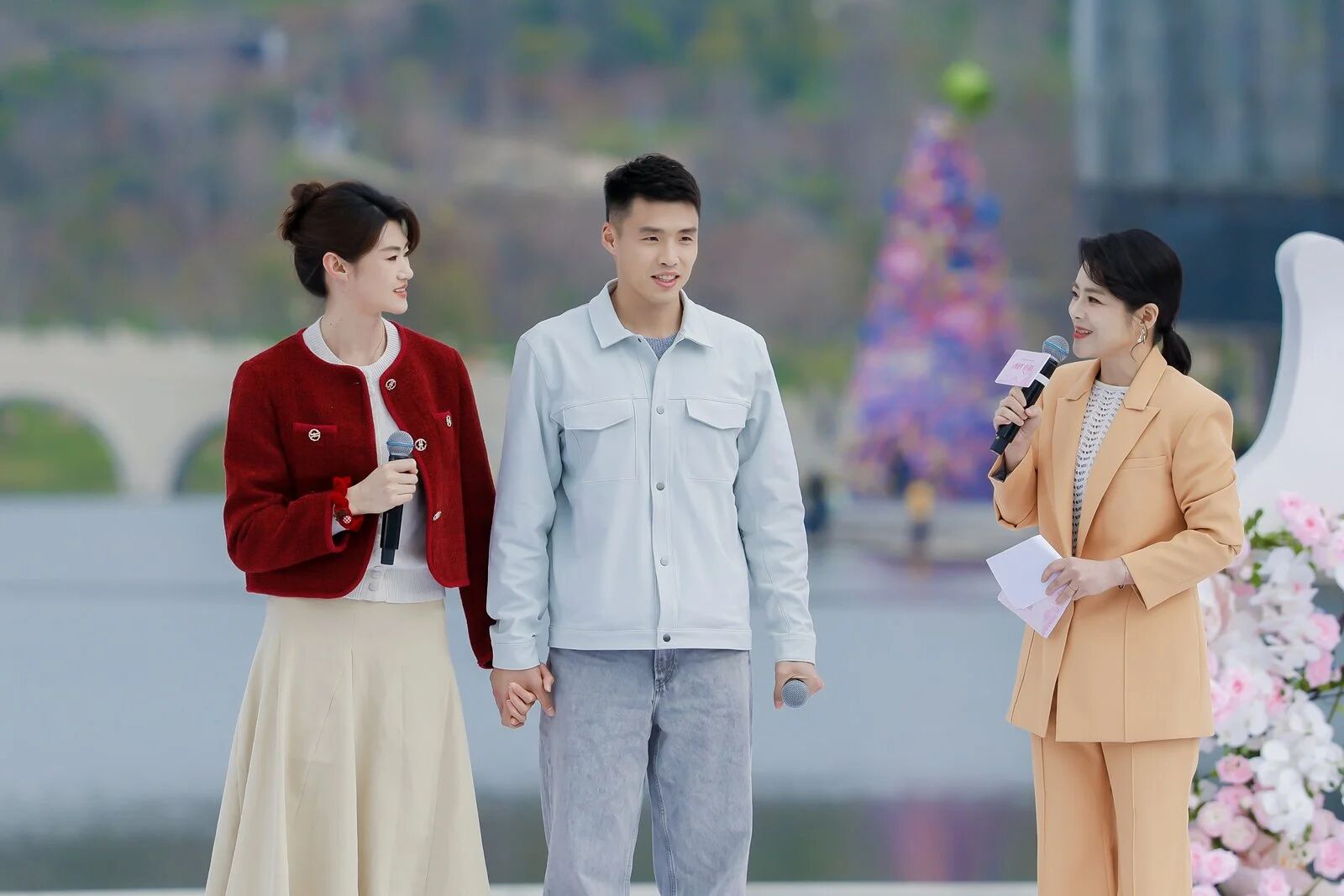 婚礼当天,沿草坪铺开的甜蜜集市汇聚30余个特色摊位,涵盖花艺、珠宝、甜品、美妆、文创等多个品类,让市民在见证浪漫的同时,一站式尽享游购体验。婚礼开始前,SMG东方娱乐主持人衣漪来到集市现场直播,带领更多观众“云逛集市”,近距离感受“甜蜜产业”的多元业态与春日消费活力。