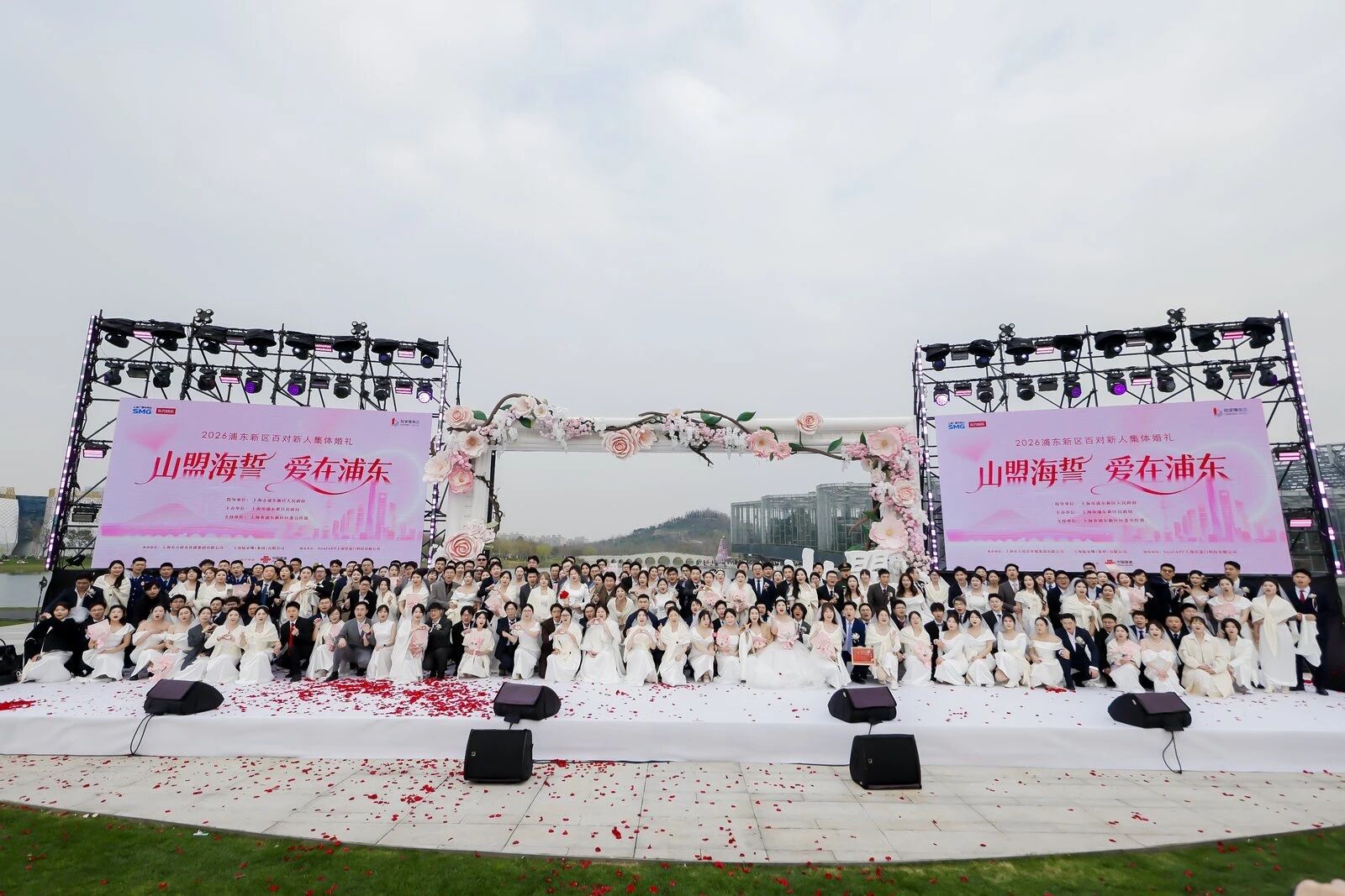 3月22日,由SMG东方娱乐全程策划并承制的“山盟海誓 爱在浦东”2026浦东新区百对新人集体婚礼在上海世博文化公园音乐之林草坪举行。本次活动由上海市浦东新区人民政府指导,上海市浦东新区民政局主办,上海市浦东区委宣传部全程支持。