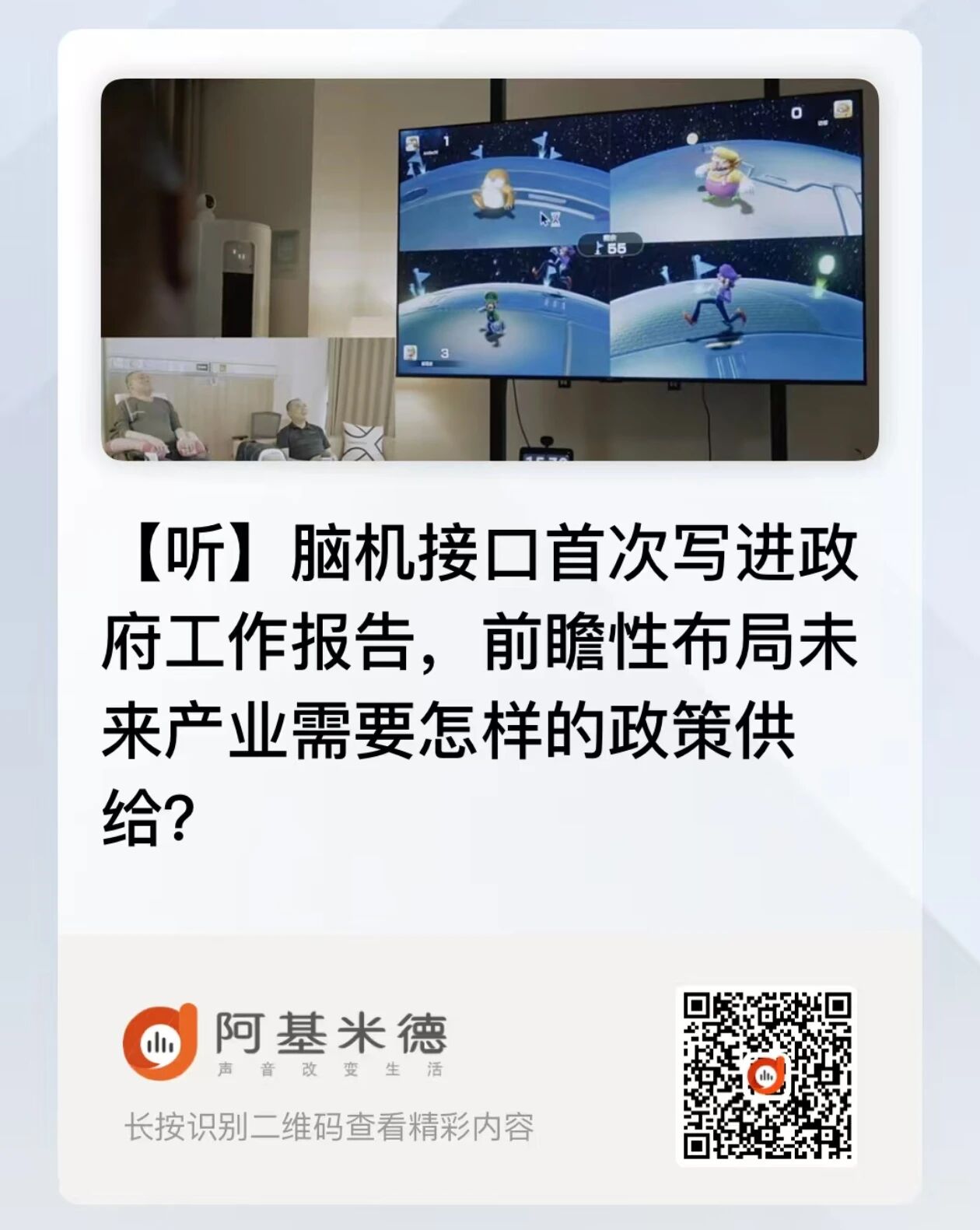 上海新闻广播《990早新闻》、阿基米德推出录音报道《脑机接口首次写进政府工作报告,前瞻性布局未来产业需要怎样的政策供给?》,抓住脑机接口首次写入政府工作报告的新闻点,客观呈现我国技术跻身世界第一梯队的现状,同时将技术案例与专业建言结合,兼具政策前瞻性与行业指导性,让抽象的未来产业规划更具体,贴近性强。