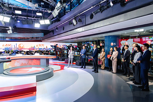 会上,双方围绕相关重点合作项目进行了深入探讨。会前,百联集团有限公司一行参观了上视大堂新媒体平台和智慧广电展示区、第一财经演播室以及东方卫视4K超高清新闻演播室,详细了解上海广播电视台(集团)“智能化、超清化、移动化”建设情况及四个主要新媒体产品运营发展情况。