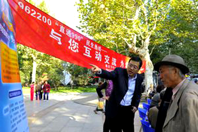 10月27日上午,上海人民广播电台《直通990》节目组联合上海市民政局和《上海老年报》在淮海公园举行了“为老咨询会”,为老年朋友提供包括健康咨询、维权咨询在内的各类便民服务,并倡议征集老年志愿者。有超过400位老年朋友到场参与。