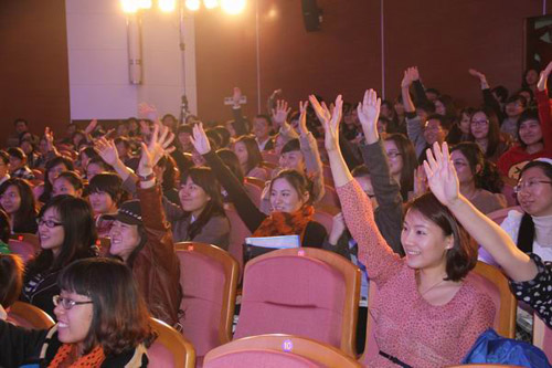 SMG资深王牌主持曹可凡幽默的谈吐和丰厚的阅历深深吸引了在场学生,现场气氛热烈