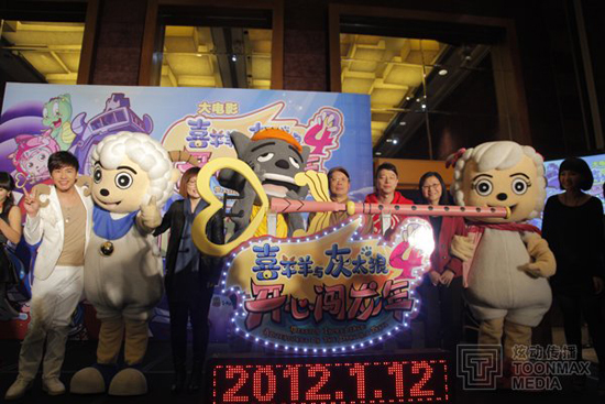 日前,影片出品方上海炫动传播股份有限公司、广东原创动力文化传播有限公司、北京优扬文化传媒有限公司在“羊城”广州召开新闻发布会,正式宣布大电影第四部《喜羊羊与灰太狼之开心闯龙年》将于1月12日全国钜献。