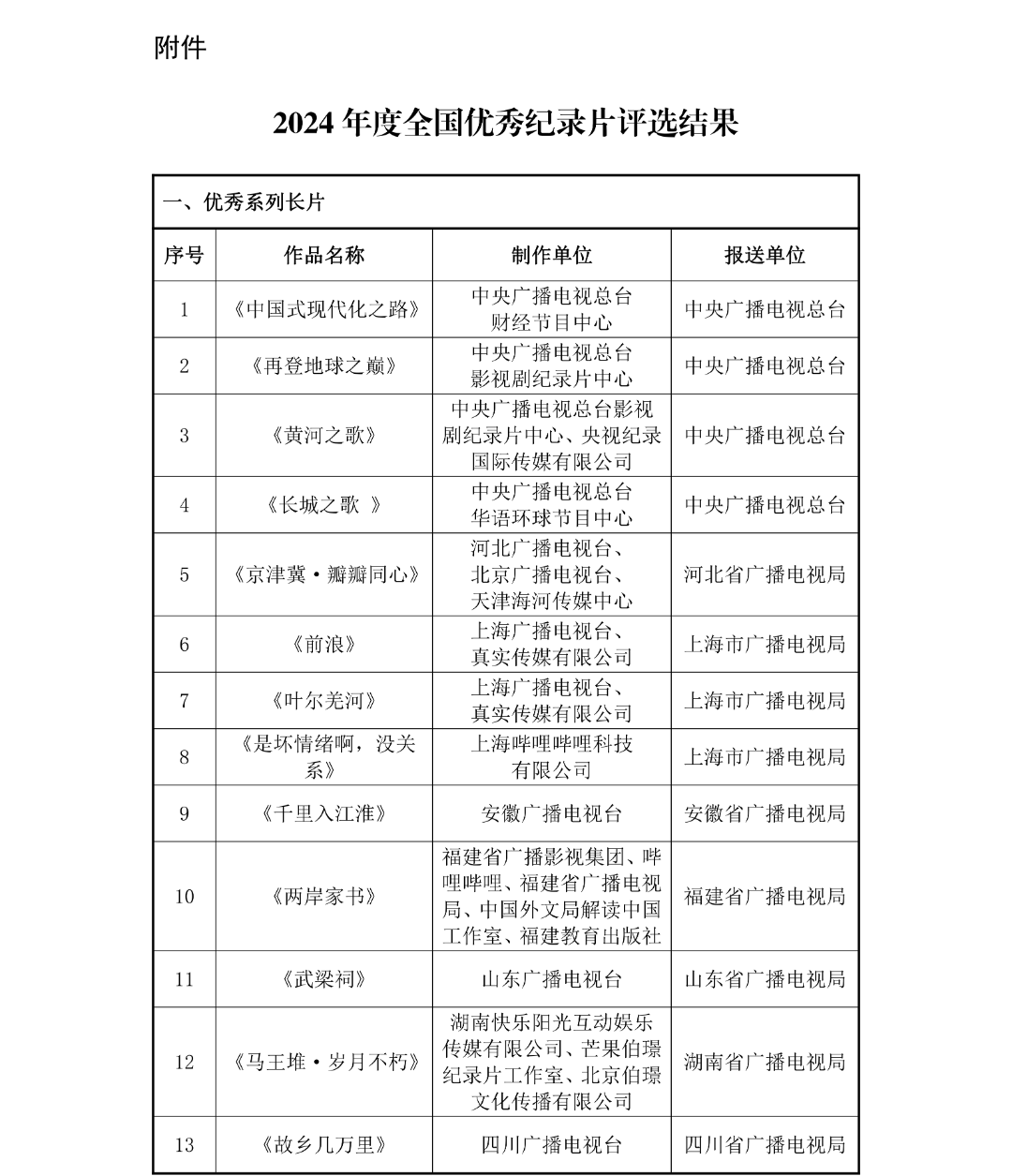 2024年度全国优秀纪录片评选结果公示,上海广播电视台收获8项大奖