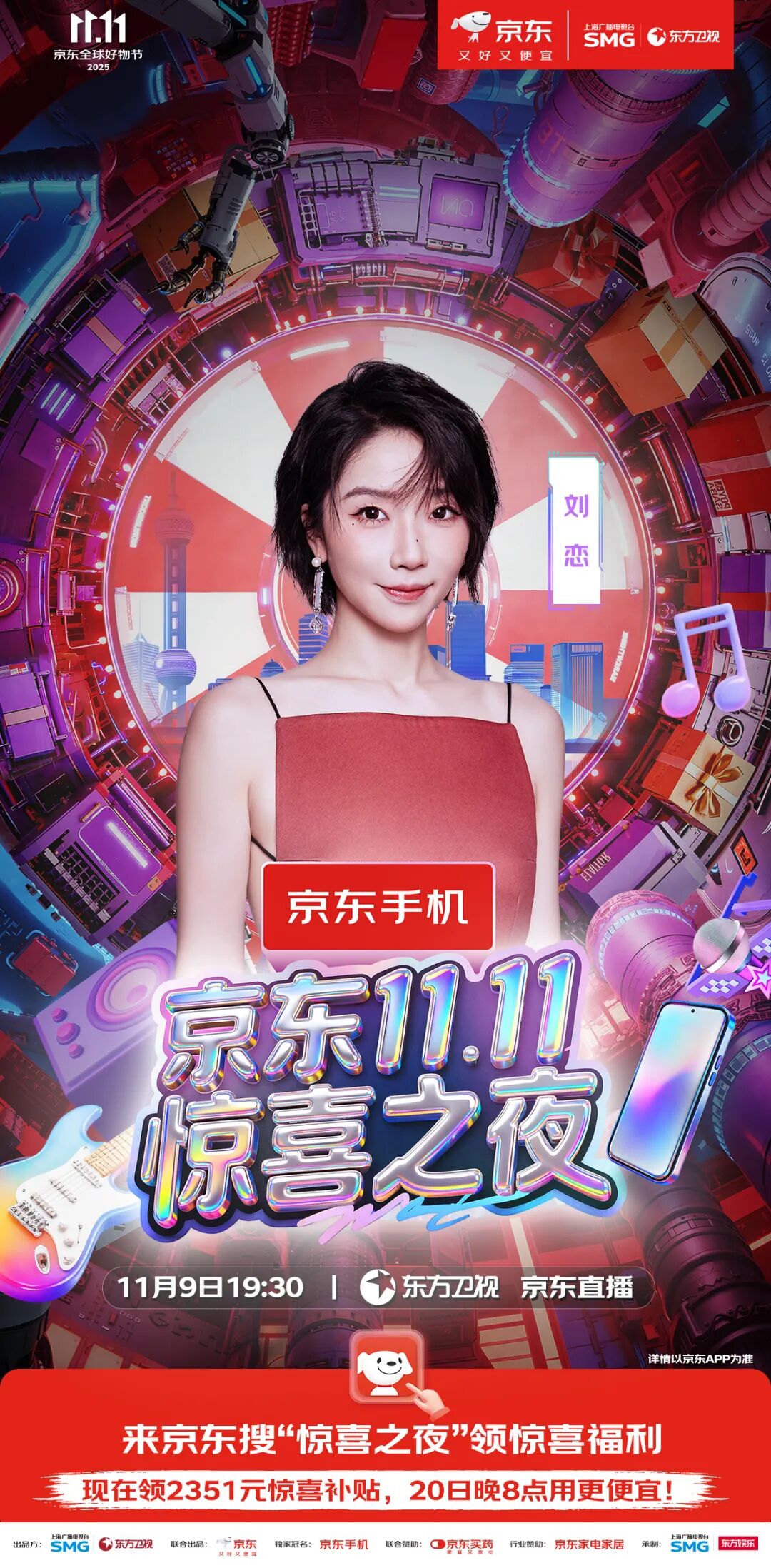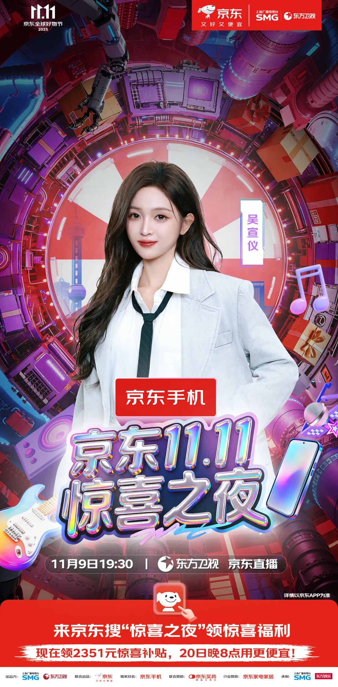 最终精彩,敬请锁定11月9日19:30东方卫视、东方娱乐全媒体矩阵及京东站内直播。惊喜层层递进,热度不断升级,这场盛会,等你亲自来开启!
