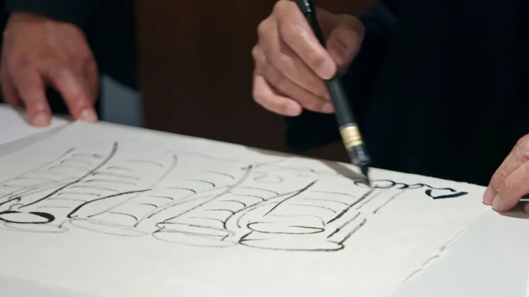 安藤忠雄现场手绘“张江之尚”八联筒手稿