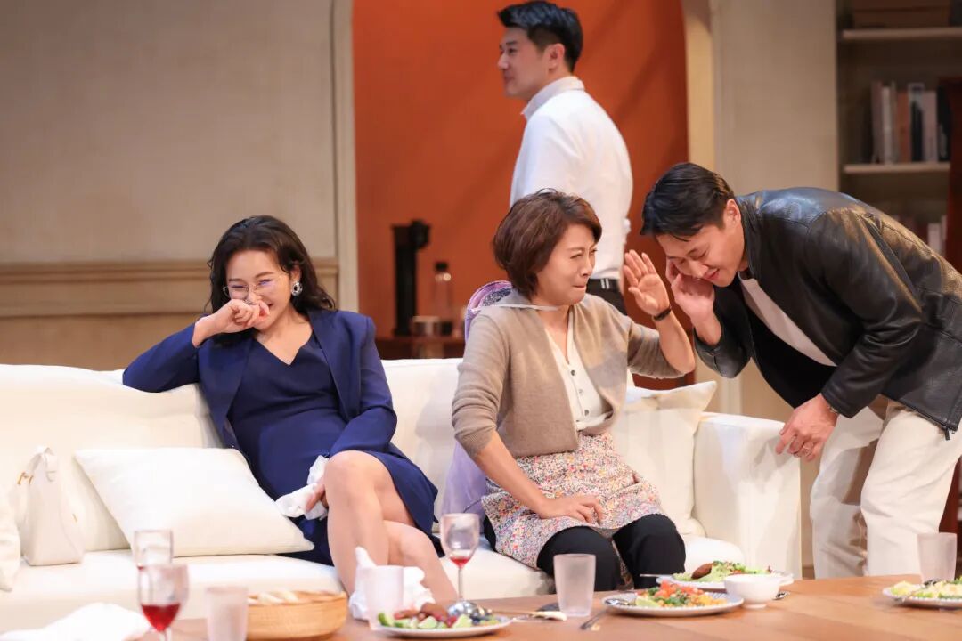 如同一个戏剧“风暴眼”,这个固定空间让观众不自觉沉浸其中,仿佛就坐在他们的沙发旁,成为这场既扎心又温馨聚会的“第六位参与者”。