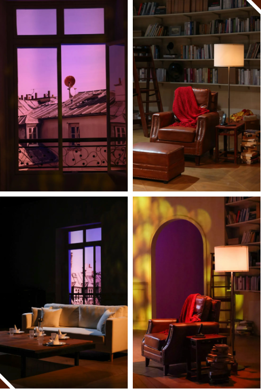 舞台设计同样匠心独具——从散落的书籍到法式情调的家具餐具,细节处处经得起推敲,共同构建出一个真实可信的巴黎家庭客厅。