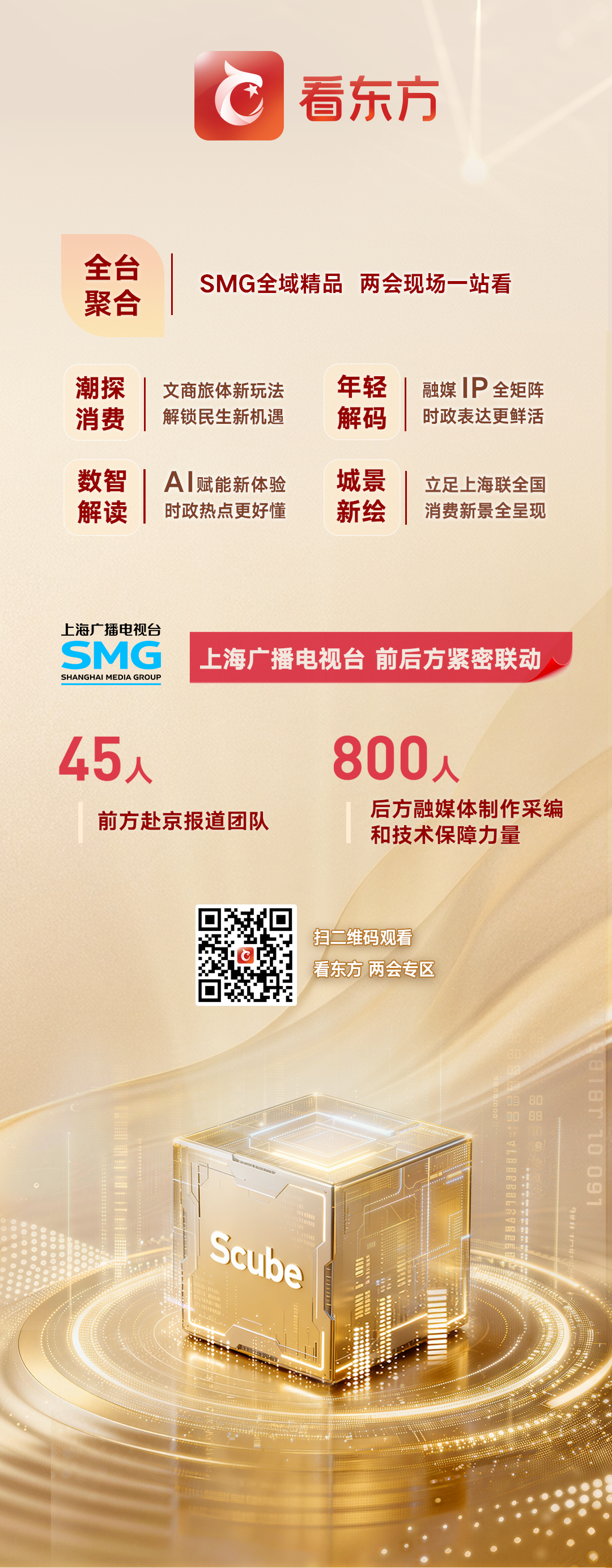 2026全国两会召开在即,上海广播电视台高度重视、集结精锐,精心组建45人前方报道团队奔赴北京,联动后方800人融媒体制作采编和技术保障团队,聚力打响“2026看两会 看东方”新闻品牌,用心用力打造好报道、好评论、好创意,彰显上海广播电视台的新闻制播专业能力和数智变革最新成果,为“十五五”开局之年召开的重要会议全力营造凝心聚力、团结奋进、一马当先的舆论氛围。